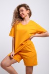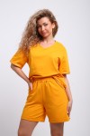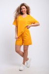 Прогулочный летний костюмчик из тонкого трикотажа. Двойка выполнена из качественной ткани. В составе материала - хлопок (75%), полиэстер (20%), лайкра (5%). Футболка с коротким рукавом и шортики с карманами идеальны для летнего спорта. Горловина- V не натрет шею, а резинка на поясе не давит на живот. Трикотажная модель из футера российского производства - универсальная вещь на лето и весну. Изделие поставляется в размерном ряде - с 42 по 52 размер. Модель подойдет взрослым женщинам и девушкам. Комплект идеален девочкам - подросткам высокого и невысокого роста. Из-за оверсайз кроя комфортно и стройным дамам и с пышными формами (плюс сайз). Изделие оценят беременные женщины. Трендовый трикотажный комплект сшит из футера, Вы обязательно должны обратить внимание на это при покупке. Он плотный, но при этом тело дышит и в нем совершенно не жарко. Шорты с широкими штанинами и футболка - шикарный тренировочный дуэт из хлопкового полотна. В холодный демисезон костюмчик свободного кроя пригодится для беговых и разминочных упражнений в спортзале. Свободный крой костюма с удлиненными шортами позволяет носить его дома. Молодежный набор из коллекции нашего бренда - классный предмет женского гардероба!