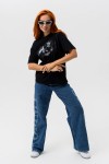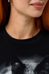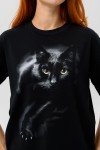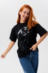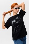 8506-1 Футболка женская оверсайз - черный+кошка (НТ)