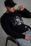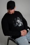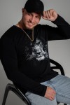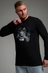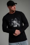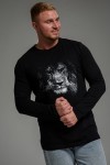 8514-1 Футболка с длинным рукавом мужская - черный+лев (НТ)