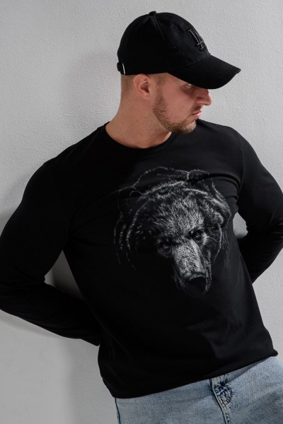 8514-1 Футболка с длинным рукавом мужская - черный+медведь (НТ)