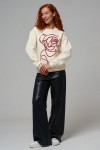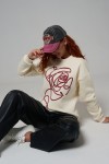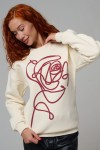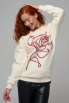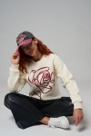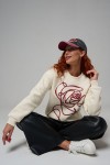 8577 женский свитшот оверсайз - молочный+роза (НТ)