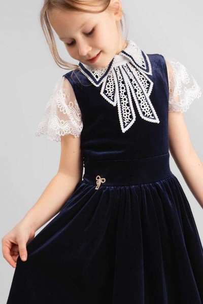 Блузка трикотажная для девочки SP014 - кремово-синий (НТ)
