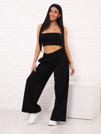 Брюки палаццо на резинке, Арт. 812 - черный (НТ)