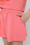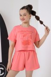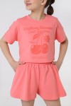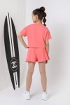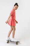 Эффектный костюм для девочки из хлопкового полотна с лайкрой. Футболка с принтом в модной стилистике, свободная, со спущенной линией плеч, округлым вырезом горловины, короткими рукавами. Шорты-юбка с боковыми карманами, на притачном поясе с отстроченной эластичной тесьмой.