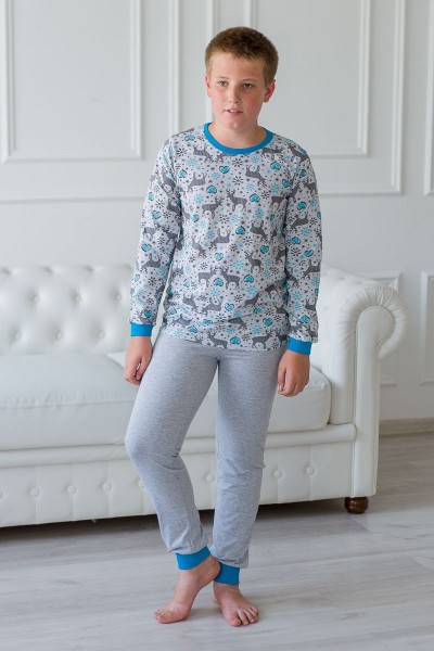 Пижама детская из джемпера и брюк из кулирки Олененок голубой (АМ)