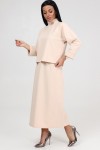 Трикотаж - Футер двунитка (Хлопок 75%; Полиэстер 20%; Лайкра 5%). Костюм женский из футера двунитки с лайкрой. Кофта свободного силуэта, укороченная, со спущенным плечом. Рукав 3/4 с манжетой. Воротник - стойка. Юбка длина макси, расклешенная к низу. Пояс на резинке.