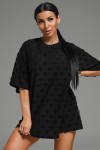 Ирбис футболка женская (махра черный сердечки) (ЛТ)