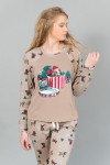 Женская пижама с брюками и кофтой 144 - коричневый (НТ)
