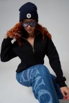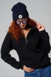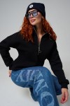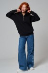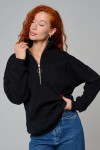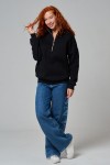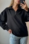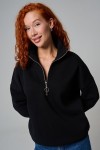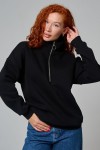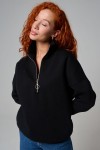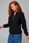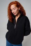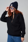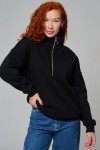 Женский свитшот на молнии оверсайз начес 14427 - черный (НТ)