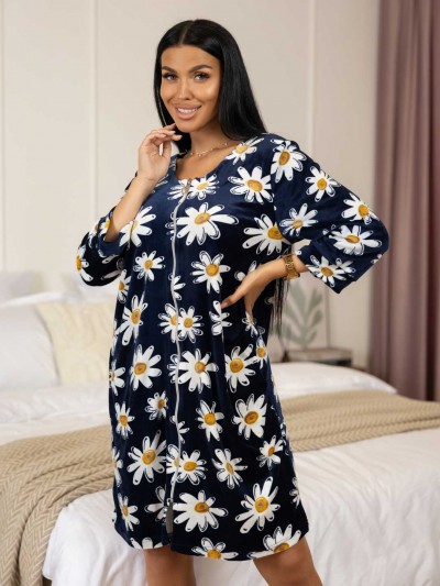 Женский халат из велюра, прямой силуэтной формы, с О-образной горловиной, на молнии и рукавом 3/4. Халат отлично подойдет на прохладную погоду.