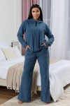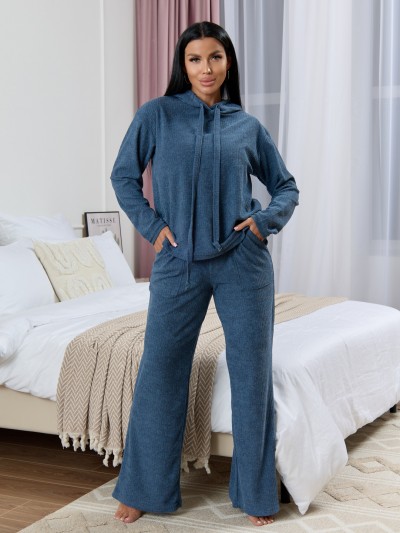 Костюм домашний махровый с брюками представляет собой идеальный выбор для тех, кто ценит комфорт и тепло. Он выполнен из мягкого и теплого материала, который обеспечивает максимальное удобство и свободу движений. Худи с капюшоном, длинным рукавом и шнурком из основного материала. Широкие брюки с накладными карманами.