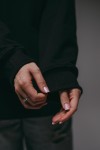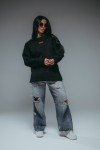 Свитшот прямой - оверсайз со спущенным плечом и длинным втачным рукавом. По низу рукавов втачаны манжеты из кашкорсе. Принт на полочке и спинке.