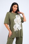 Костюм женский футболка брюки из вискозы 397 - темно-зеленый (НТ)