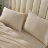 Для нашего фирменного постельного белья Elizabeth мы используем 100% тенсель (эвкалиптовое волокно) пряжи 60s, сатиновое плетение плотностью 300ТС. Комплект выполнен в однотонном дизайне с изящным белым кантом по краю пододеяльника и наволочек.
