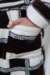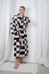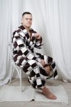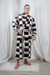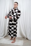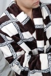 Трикотаж - Велсофт (Полиэстер 100%). Мужской халат изготовлен из ткани "велсофт". Теплый и уютный халат на поясе, с воротником "шалька", двумя накладными карманами, длина рукава регулируется отворотом.