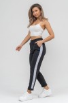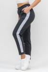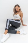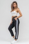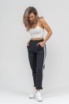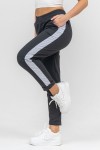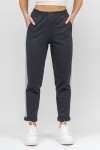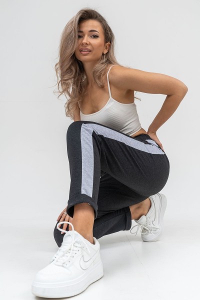 Молодежные брюки с длиной 7/8 и манжетом по низу, выполнены из футера цвета антрацит. По бокам брюк имеются карманы и светлые вставки. Пояс брюк обработан на специальной поясной машине. Брюки подходят как для спорта, так и для отдыха.