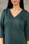Платье прилегающего силуэта, из искуственной замши, длиной до середины бедра, с V-образной горловиной и рукавом 3/4.Платье отлично впишется в повседневный гардероб, иделально будет смотреться с массивными ботинками, либо с ботфортами.