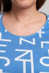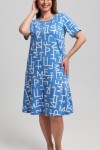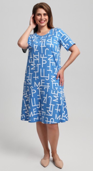 Платье женское из трикотажного полотна «кулирка» с набивным рисунком, полуприталенного силуэта, с короткими втачными рукавами, горловиной овальной формы, карманами в боковых швах. Низ изделия с воланом ассиметричной формы.