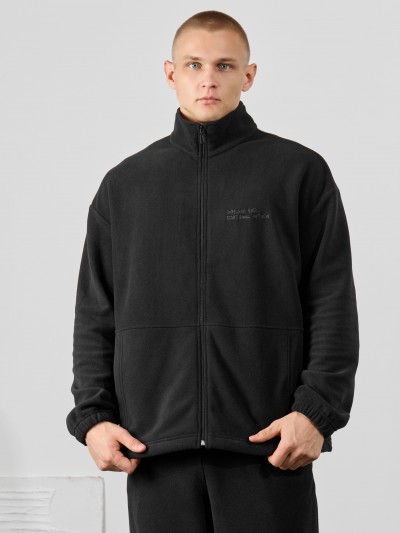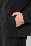 Куртка-толстовка мужская из флиса, с длинными втачными рукавами, воротником-стойкой и центральной бортовой застежкой на тесьму "молния". На полочках -кокетки и накладные карманы с вертикальными входами, на левой полочке в области груди - вышивка. Нижние срезы рукавов обработаны подгибкой с эластичной тесьмой, а низ изделия - с вложением в шов шляпной резинки с фиксаторами для регулирования степени прилегания изделия по бедрам.