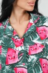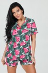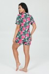 Пижама женская состоит из жакета и шорт. Жакет прямого силуэта. Сшита из натурального хлопка, имеет высокую воздухопроницаемость, хорошо впитывает влагу.