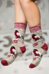 Носки шерстяные женские Снегири - серый (НТ)
