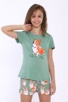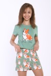 Пижама для девочки Корги на зеленом арт. ПД-023-062 - зеленый (НТ)
