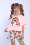 Пижама для девочки Кот-арбуз арт ПД-019-067 - светло-розовый (НТ)