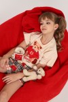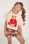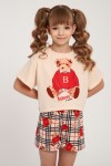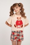 Пижама для девочки Медведь-клетка ПД-019-075 - крем-красный (НТ)