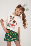 Пижама для девочки ПД-019-073 Кот Новый год - крем-авокадо (НТ)