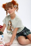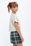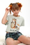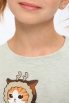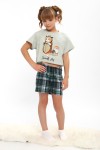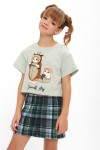 Пижама для девочки ПД-019-073 Кот Новый год - св-зеленый-клетка зеленая (НТ)