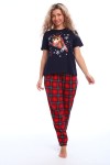 Пижама женская новогодняя Лошадка - синий+красный (НТ)