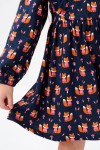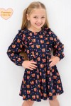 Платье Крылья длинный рукав детское - ЛИСИЧКИ на Темно-Синем (НТ)