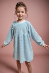 Платье Велюр с длинным рукавом 33054 - голубой (НТ)