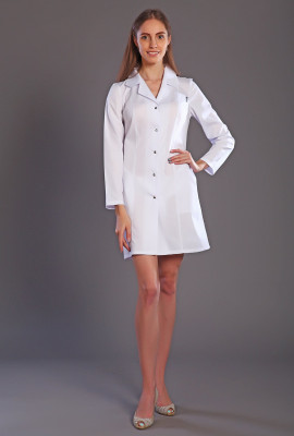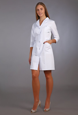 Или, к примеру, классический медицинский халат, но с прекрасным дизайнерским решением в виде голубой вставки от груди до самого края подола.