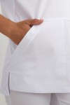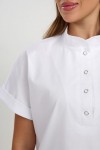 В боковых швах разрезы разной длины. Спинка цельнокроеная, длиннее полочки.