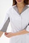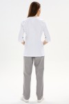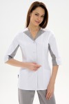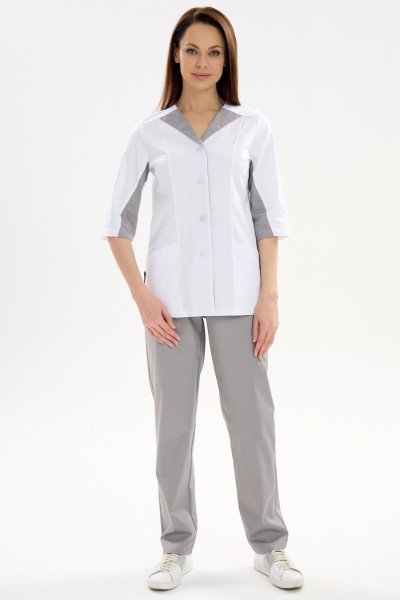 Костюм медицинский женский изготовлен из смесовой ткани Тиси. Костюм состоит из куртки и брюк.