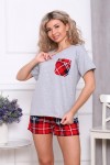 Трикотаж - Кулирка (Хлопок 100%). Пижама женская с шортами - удобная и практичная одежда для дома. Домашний костюм состоит из футболки с коротким рукавом и прямых шорт. Стильный домашний комплект двойка имеет натуральный состав из 100% хлопка.