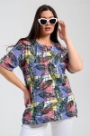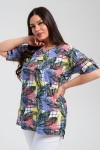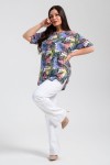 Туника 8243 - тропические листья с сиреневым (НТ)