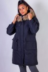 Зимняя парка удлиненная, с капюшоном натуральный мех арт. 619 - черный (НТ)